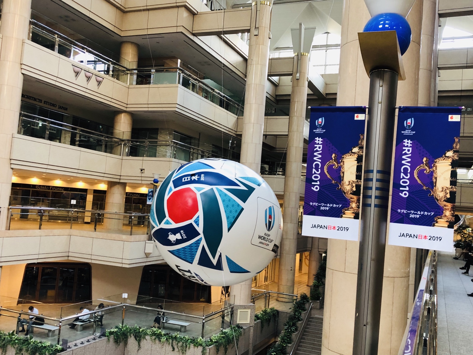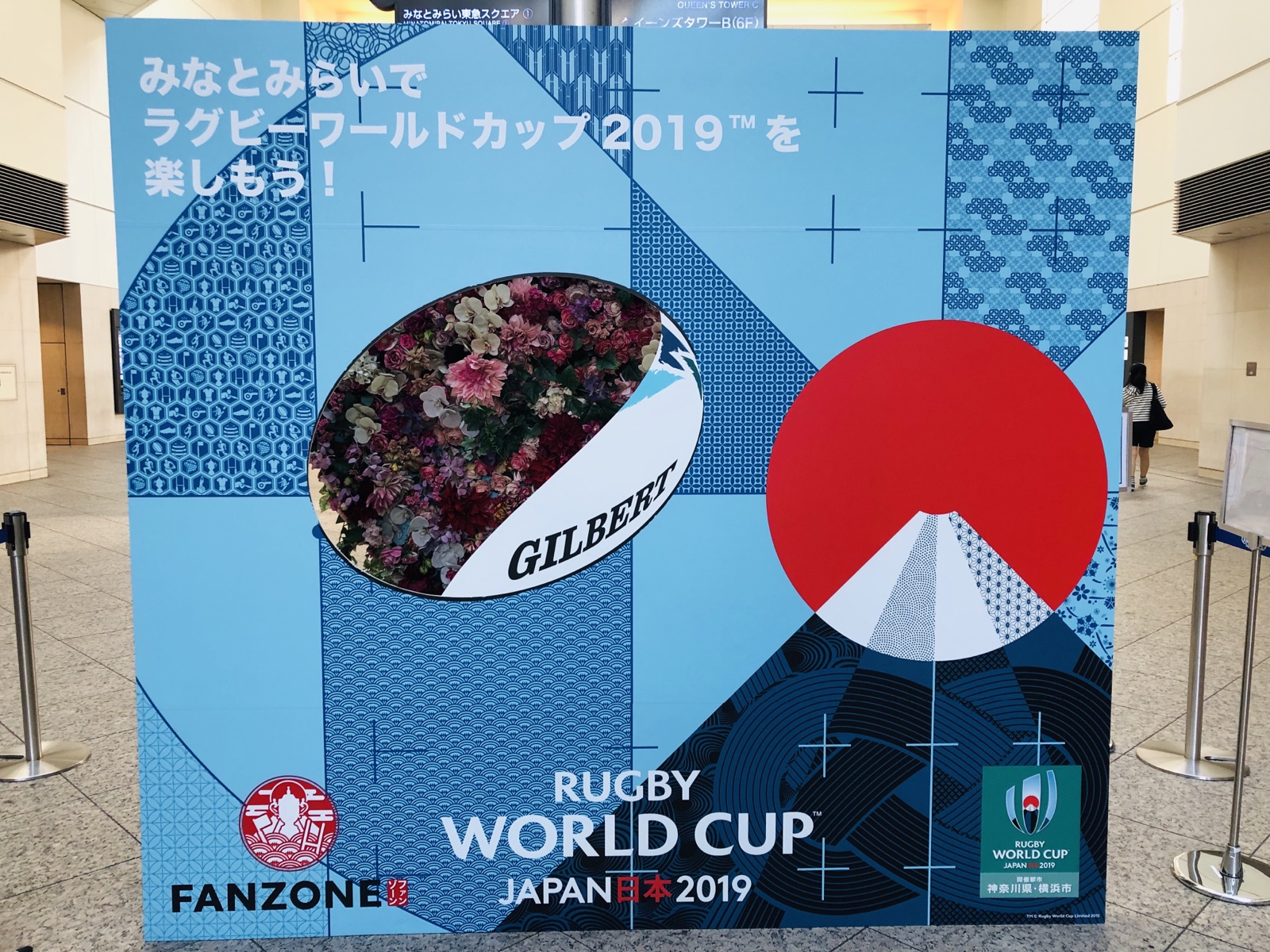 ちなみに、そのファンゾーンの一つ、横浜みなとみらいエリアはラグビーでデコレーションされてました。