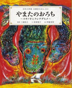 出雲に降ったスサノオは、8つの頭と8つの尾を持つ怪物ヤマタノオロチを退治し、地上の世界で一躍英雄となります。