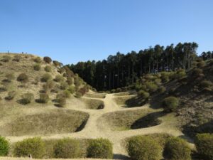 なかでも堀の底を畝(土塁)で仕切った障子堀は圧巻です。これだけ保存状態よく見れるのは貴重、曲輪や堀・土塁も残る名城です。
