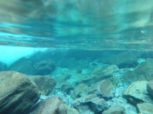 空よりも青く、川底まではっきり見通すことのできる透明なせせらぎ。