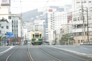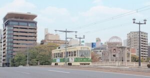 歴史ある城下町を走る路面電車。熊本地震からの復旧の進む熊本城を間近に観ることができます。