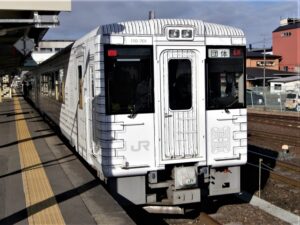 JR八戸線を走るレストラン列車で、三陸の海辺の景色を眺めながら、東北の食材を使ったコース料理をいただけます。