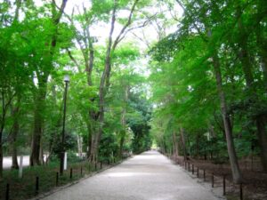 記者が最初に訪れたのは「下鴨神社」。ここは黒髪の乙女と先輩が出会う場所です。