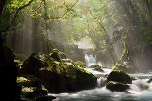 菊池川は、阿蘇外輪山からわき出した伏流水を有明海へと運ぶ河川。本誌がおススメする旅は、その上流、標高500~800mに広がる菊池渓谷です。