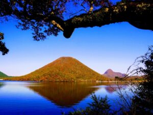 特に秋の時期は、「錦秋」という言葉そのまま、錦の衣をまとったように山肌が赤く染まります。