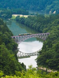 会津地鶏や会津産馬刺しを楽しんだら、翌朝に第一只見川橋梁ビューポイントへ…。
