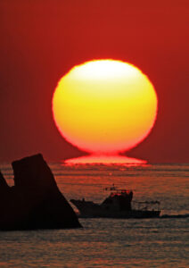 さらに、ひと冬の間に20回程度の神秘の現象といわれる「宿毛湾のだるま夕日」(高知県宿毛市)。海面に光が反射して太陽がだるまのように見える現象です。