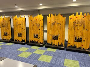 床材ビジュアルボードや横断幕などが登場、劇場内装飾も「THE FIRST SLAM DUNK」仕様になっていました。